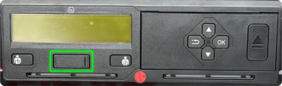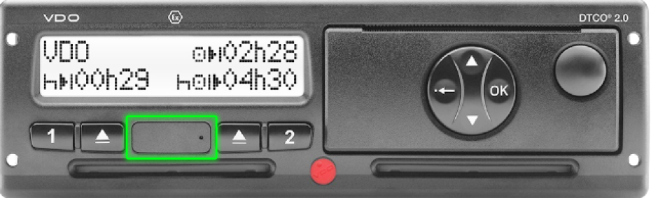 Tüm girişler ayarlandıktan sonra takograf hazırdır ve ekranda izin verilen sürüş ve dinlenme süresinin mevcut durumu gösterilir. Sürücü kartı yuvasının yanındaki (1) düğmesine uzun basıldığında, geçerli ülkenin onaylanması gerekir ve ardından sürücü kartı çıkarılır. Sürücü kartı takıldıktan sonra yukarıdaki adımlar tekrar başlayacaktır.