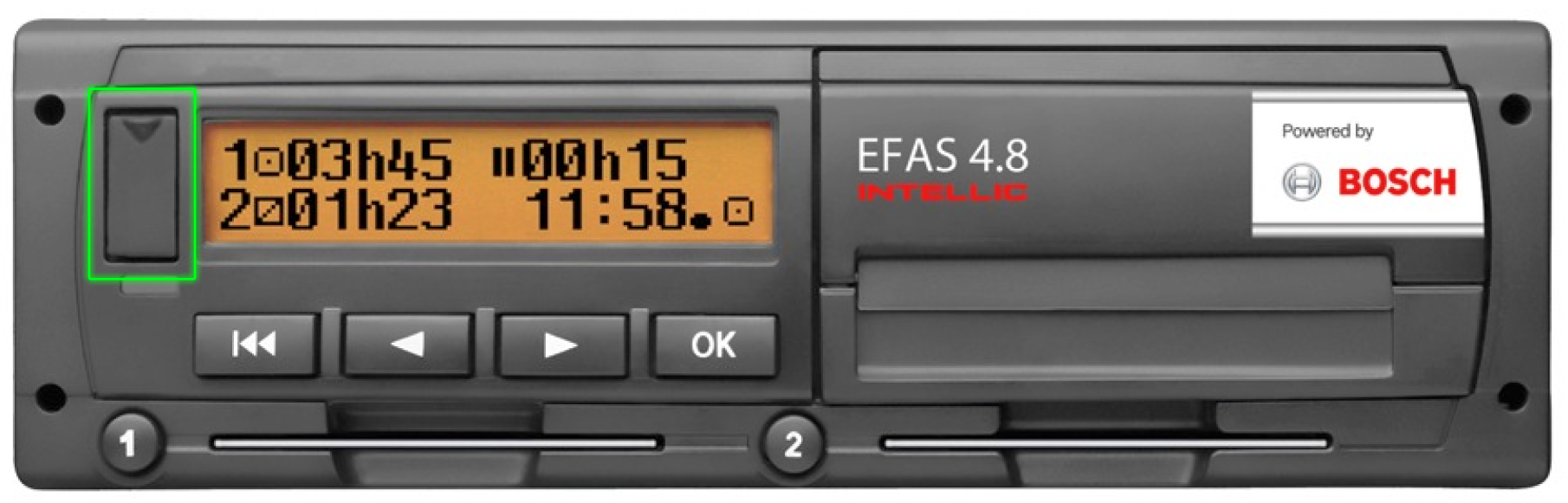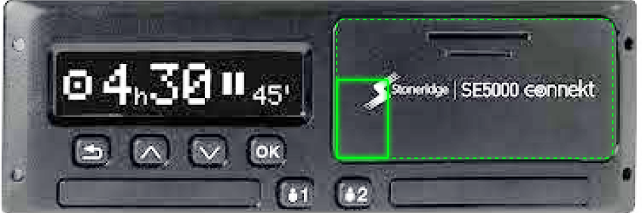 Dijital takografta iki adet kart yuvası vardır. Öncelikle sürücü kartının takografın sol tarafındaki ilk yuvaya (1) takılması gerekir. Sürücü kartının, çip kısmı yukarı bakacak şekilde yerleştirilmesi gereklidir. Takograf, sürücü kartını ve sürücü kimliğini tanıdıktan sonra sürücünün adının yer aldığı bir karşılama ekranı gösterir. Bu ekranda sorulara cevap vererek manuel giriş yapılması gerekir.